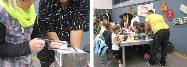 Aufgefallen ist die Ausdauer, die einige Jungen bei der Bearbeitung von Speckstein an unserem Stand an den Tag legen.