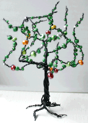 Außerdem wurde wie im letzten Jahr eine neue Kreativ-Idee umgesetzt, und so entstanden Bäume und andere kleine Kunstwerke auf Draht und bunten Perlen.