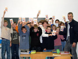 Am 4. November 2005 hat der Vorsitzende des Fördervereins, Markus Mücke, den Schülern der Klasse 6a die Bücher überreicht. Mit den Schülern freute sich auch die stellvertretende Schulleiterin Ines Hackbarth.